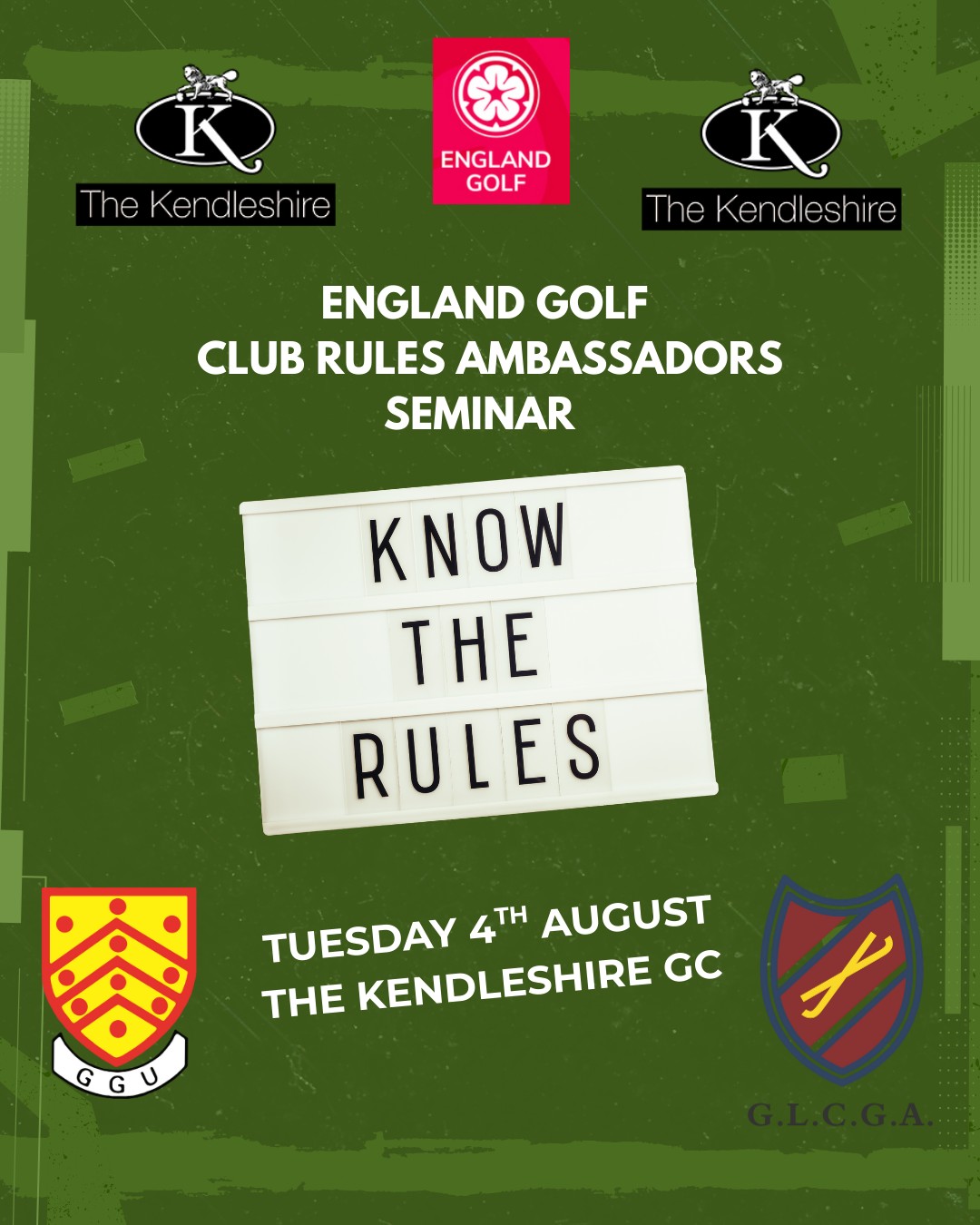 ENGLAND GOLF Club Ambassador Rules Seminar coming to The Kendleshire GC on Tuesday 4th August.
